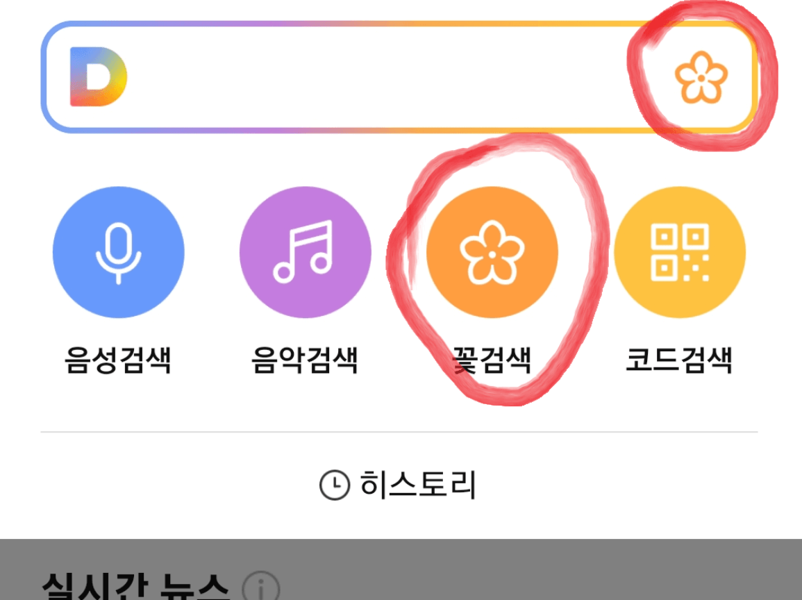 다음 어플에서 사진으로 꽃이름 찾기